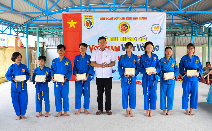 Kết quả có 100% thí sinh tham gia kỳ thi thăng cấp đạt yêu cầu đề ra, trong đó 8 võ sinh có thành tích xuất sắc được Liên đoàn Vovinam tỉnh Kiên Giang tặng Đai Danh dự./.