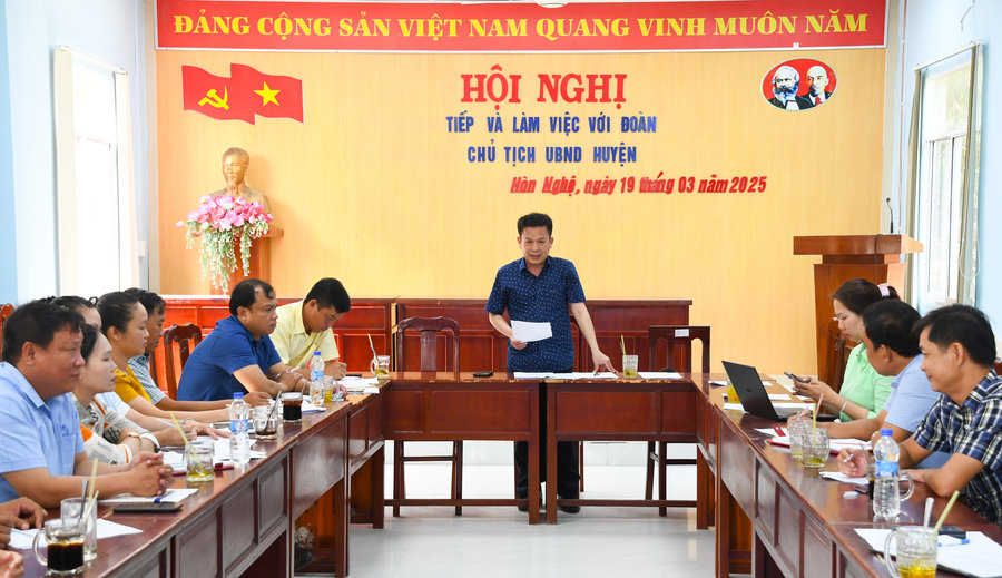 Chủ tịch UBND huyện Kiên Lương Lê Thanh Hưởng phát biểu kết luận tại buổi làm việc