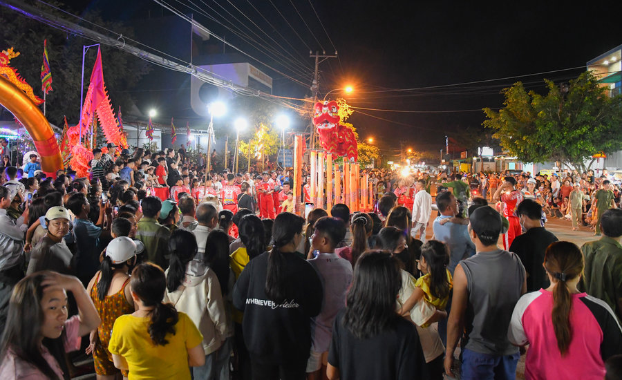 Chương trình múa lân tại lễ hội thu hút đông đảo người dân đến xem và cổ vũ