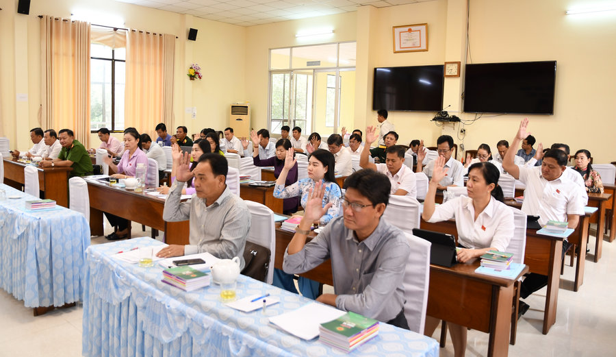 Đại biểu HĐND biểu quyết thông qua Nghị quyết tại kỳ họp