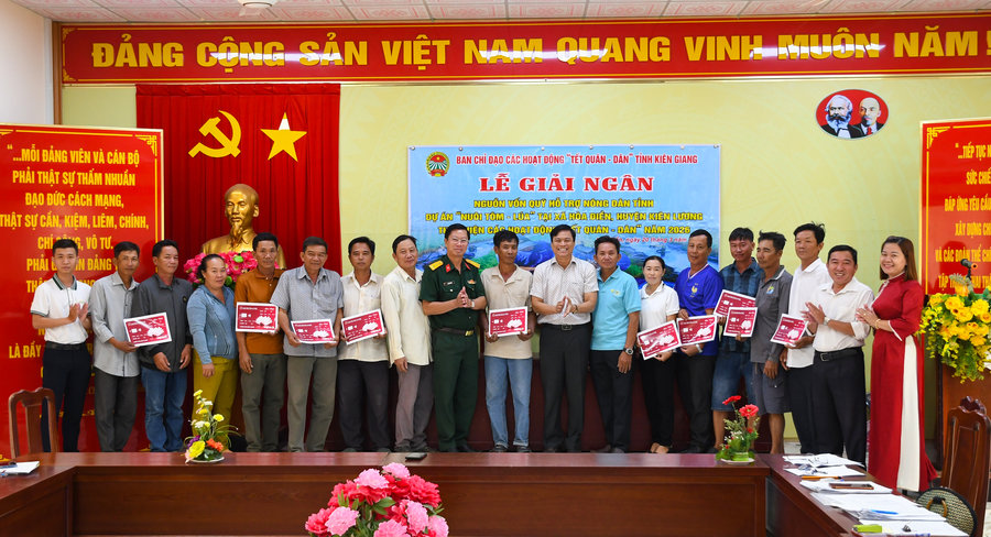 Sáng ngày 20/3, tại xã Hòa Điền (Kiên Lương), Ban Điều hành quỹ hỗ trợ nông dân tỉnh Kiên Giang tổ chức giải ngân cho 16 hộ nông dân trên địa bàn thực hiện dự án tôm - lúa. Dự án này cũng nhằm thực hiện các hoạt động “Tết Quân - Dân” năm 2026 tại xã Hòa Điền.