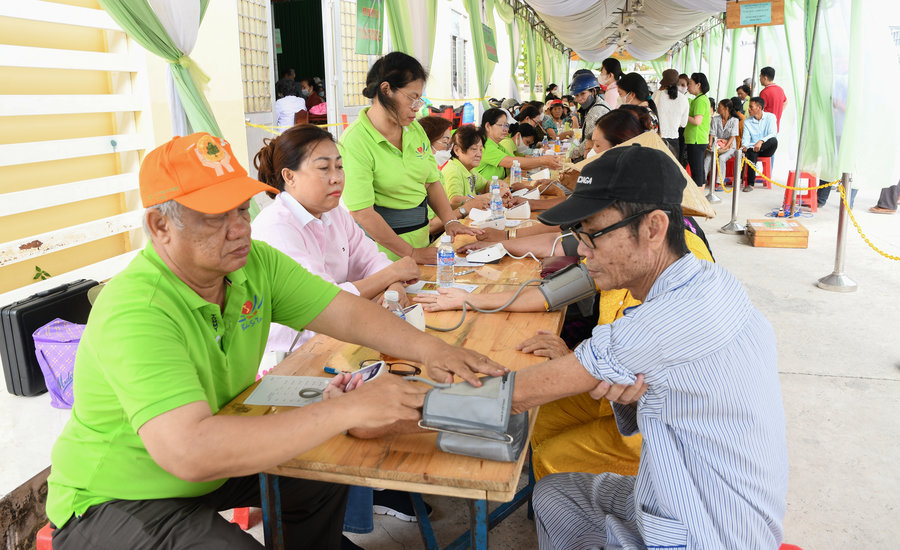 Tại đây, người dân được khám tổng quát, tư vấn sức khỏe, hướng dẫn kiến thức phòng bệnh, giúp người dân nâng cao ý thức, bảo vệ sức khỏe; mỗi suất khám, tư vấn sức khỏe trị giá 600.000 đồng. Bác sĩ Hồ Hoàng Tuấn - Trưởng đoàn bác sĩ Tâm Việt - thành phố Hồ Chí Minh cho biết, để tổ chức khám và cấp phát thuốc cho bà con đợt này, trước đó đoàn chúng tôi đã phối hợp cùng với địa phương khảo sát địa điểm khám cũng như nhu cầu khám, chữa bệnh cho bà con. Từ đó chúng tôi đã phát 1.000 phiếu khám cho bà con có nhu cầu. “Ngoài khám cho những bà con đã phát phiếu, đoàn chúng tôi còn khám cho những bà con nào không có phiếu nhưng có nhu cầu khám đều được khám miễn phí. Đợt này chúng tôi chuẩn bị gần 2.000 cơ số thuốc để khám, cấp cho bà con”.