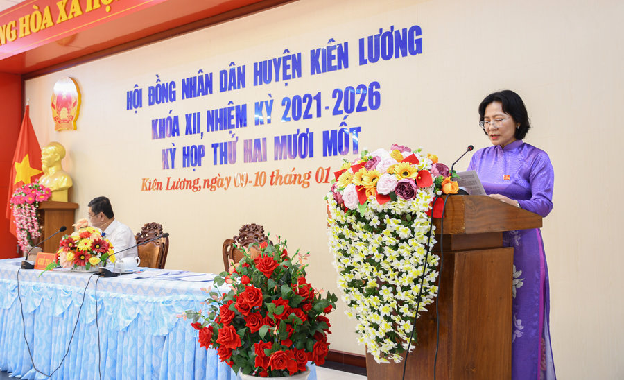 Báo cáo tại Kỳ họp thứ Hai Mươi Mốt, Hội đồng nhân dân (HĐND) huyện Kiên Lương khóa XII, nhiệm kỳ 2021 – 2026; bà Lâm Thị Xinh - Huyện ủy viên, Phó Chủ tịch HĐND huyện cho biết, trong năm 2024, Thường trực HĐND đã thực hiện tốt các nhiệm vụ đề ra, trọng tâm là phối hợp tổ chức thành công 6 kỳ họp HĐND đảm bảo trình tự theo quy định; tổ chức các phiên họp định kỳ để xem xét cho ý kiến kịp thời các nội dung thuộc thẩm quyền; phối hợp với các cơ quan thực hiện nhiệm vụ có liên quan ngày càng chặt chẽ hơn.
