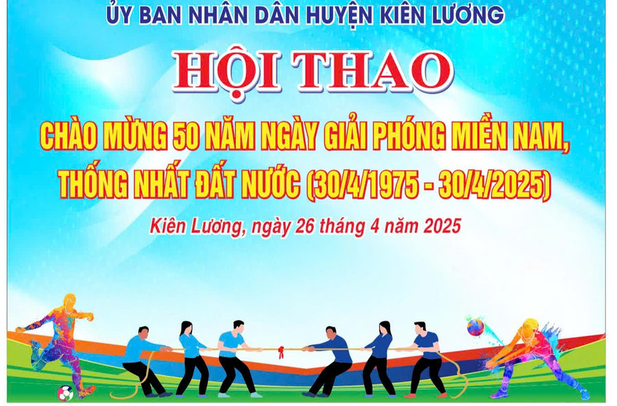 Thiết thực chào mừng kỷ niệm 50 năm Ngày giải phóng miền Nam, thống nhất đất nước 30/4/1975 - 30/4/2025; 139 năm Ngày Quốc tế lao động 01/5/1886 - 01/5/2025; 135 năm Ngày sinh Chủ tịch Hồ Chí Minh (19/5/1890 - 19/5/2025). Đồng thời, tiếp tục hưởng ứng Cuộc vận động “Toàn dân rèn luyện thân thể theo gương Bác Hồ vĩ đại” giai đoạn 2021 - 2030, ngày 26/4/2025 tới huyện Kiên Lương tổ chức hội thao năm 2025.