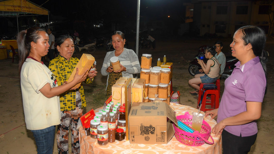Nằm trong các hoạt động của Lễ hội Kỳ Yên Đình thần Hòn Chông, xã Bình An (Kiên Lương), các địa phương trong huyện đem đến nhiều sản phẩm OCOP, sản phẩm truyền thống của địa phương đến trưng bày, giới thiệu sản phẩm và bán cho người dân.